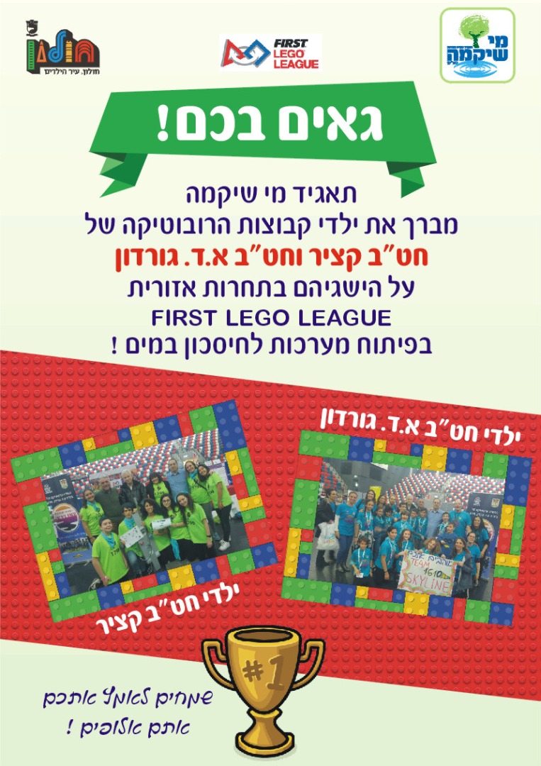 תאגיד "מי שיקמה" מברך את ילדי קבוצות הרובוטיקה של חטיבת הביניים קציר ובית הספר גורדון על הישגיהם בתחרות האזורית FIRST LEGO LEAGUE בפיתוח מערכות לחיסכון במים!