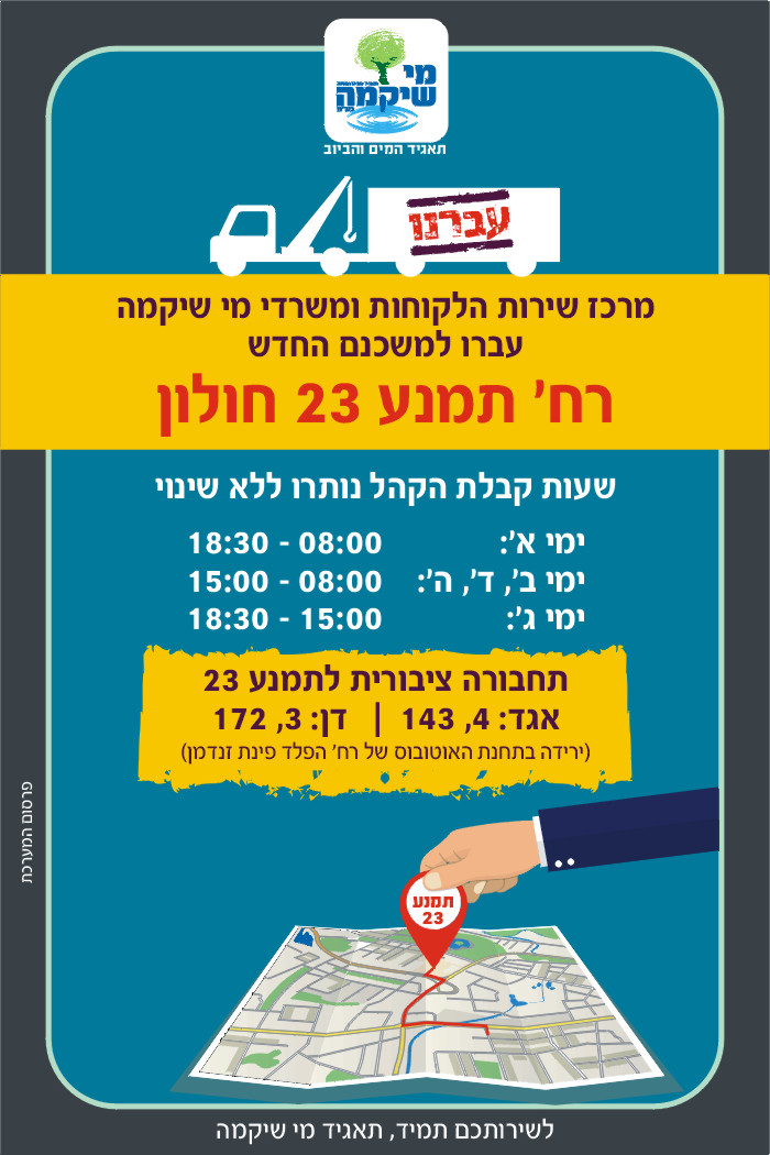 מרכז שירות הלקוחות ומשרדי מי שיקמה עברו לרחוב תמנע 23 בחולון